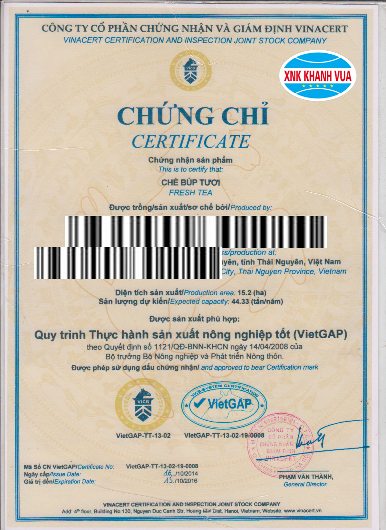 CHỨNG NHẬN SẢN PHẨM CHÈ